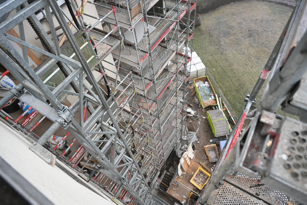 Sanierung von zwei Hochhäusern: Bei den beiden neunstöckigen Hochhäusern mit jeweils 33 Wohnungen werden Strangsanierung, Erneuerung der Gebäudehülle und Erdbebenertüchtigung umgesetzt. Die Innenarbeiten, inklusive Abbrüchen und Maurerarbeiten im Bereich Küche und Bad, erfolgten im bewohnten Zustand. Da jeweils zwei Wohnungen an einem Fallstrang hingen, wurden bis zu 16 Wohnungen parallel umgebaut.