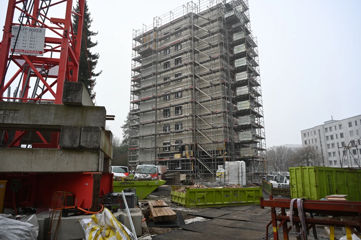 Die erste Bauetappe (Haus 14) begann im Herbst 2025; die Bauplatzinstallation ist für die zweite Etappe (Haus 12) im Frühjahr 2026 optimiert.