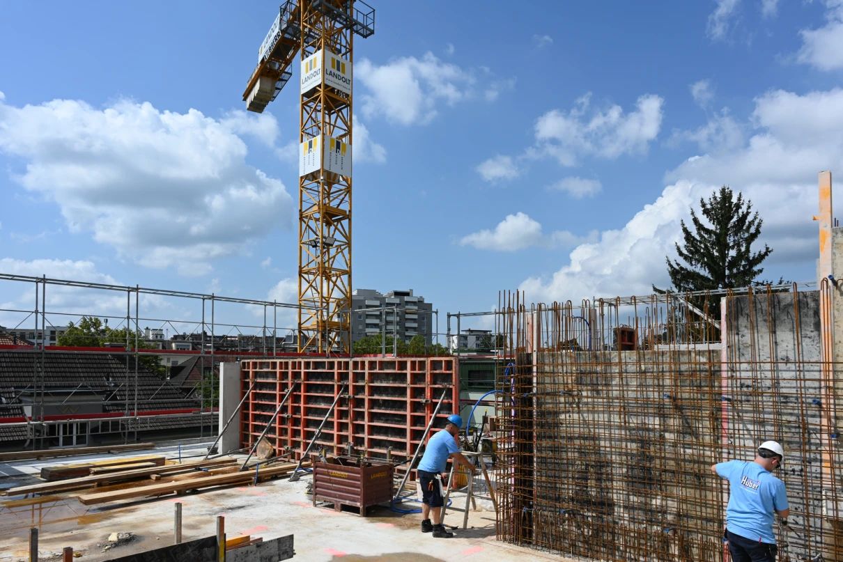 Der Rückbau startete im September 2024 unter der Leitung von Marco Basile. Nach dem fachgerechten Abbruch durch Joel Hälg folgten Aushub und Baugrubensicherung durch die Firma Wellauer. Anfang 2025 begannen die Arbeiten am Untergeschoss mit dem Einsatz von Faserbeton zur Reduktion konventioneller Armierung.