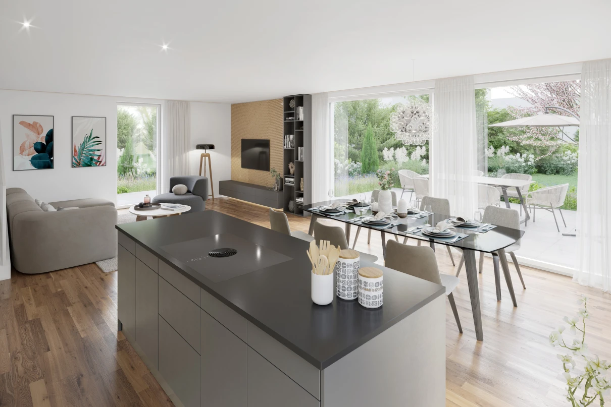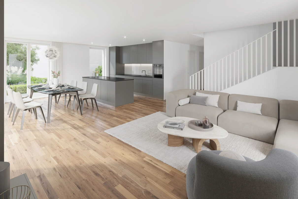 Willkommen in Hallau – wo modernes Wohnen auf ländliche Idylle trifft. Unsere 5.5-Zimmer-Einfamilienhäuser bieten den perfekten Raum für Familien, die naturnah leben und gleichzeitig auf Komfort und Stil nicht verzichten möchten.