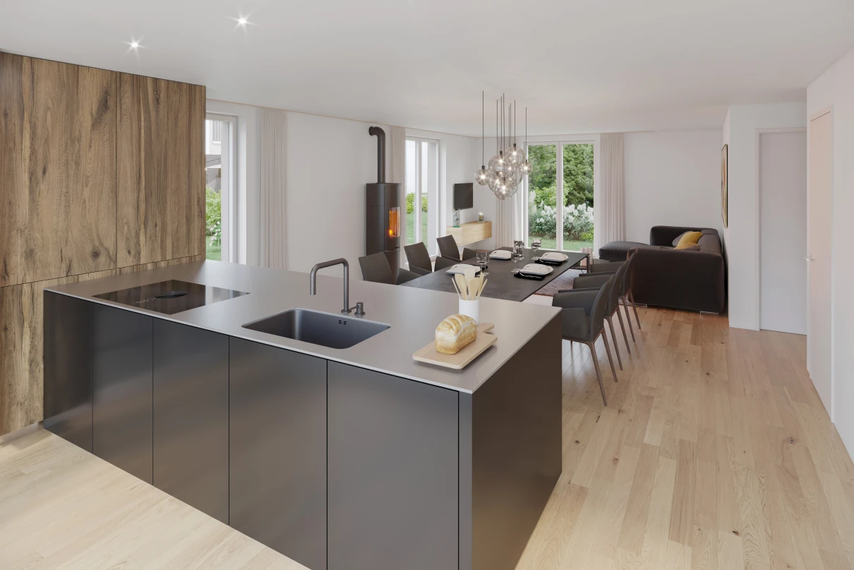Unser Neubauprojekt überzeugt mit hochwertiger Ausstattung und durchdachter Technik – von innovativen Elektroinstallationen und eigener Photovoltaikanlage bis hin zu komfortabler Bodenheizung sowie stilvollen Küchen- und Badeinrichtungen. Individuelle Materialauswahl ermöglicht ein persönliches Zuhause mit hohem Wohnkomfort.